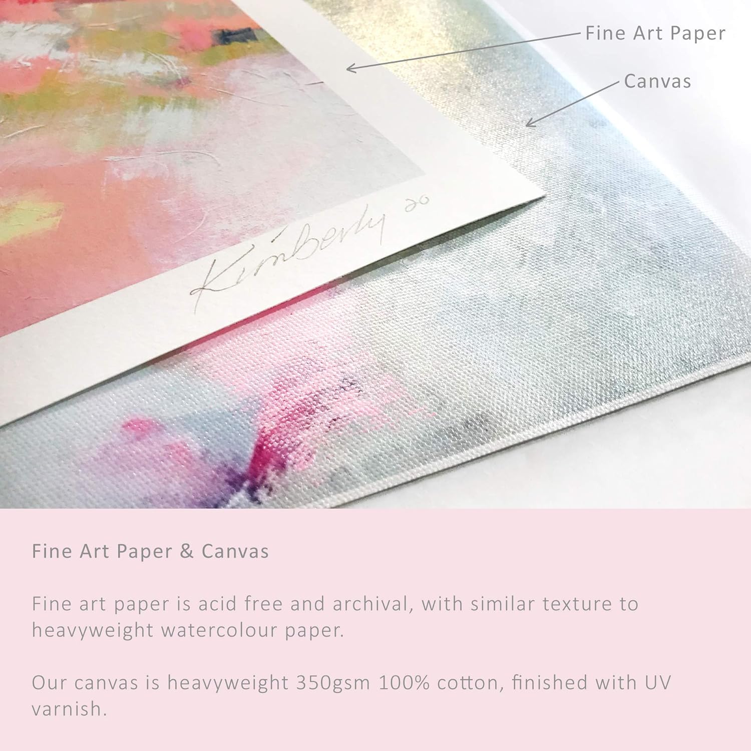 Our artworks can either be bought as canvas art or art prints (separate collections) art prints are similar to posters but in museum quality paper.